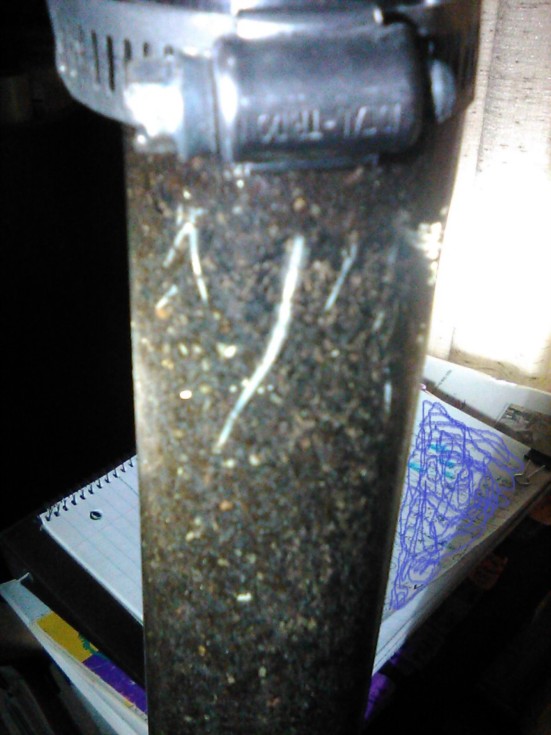 Any of these roots at like 4-1/2 inches could be THE tap root or it could be heading downward out of sight; I'm thinking this could be a corner lamp+germination technique for those with eclectic tastes one day, lol. (*_*) eg