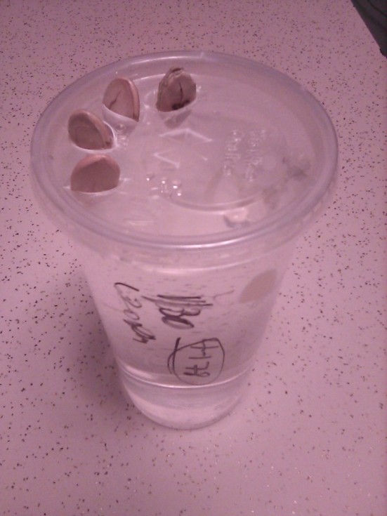 I'll bet ol' Ronald never thought that those little dimples in a soda lid would be used for sprouting seeds, but leave that to me! Here are 4 178 Gerry seeds that were placed into the dimples on 1-30-'23 @ 6:20 PM; Using a Stanley, serious box cutter with the tip set on halfweigh, I poked it though each of them downward after pushing the dimples in also. It is very dangerous to one's fingers, so be CAREFUL if you do this.