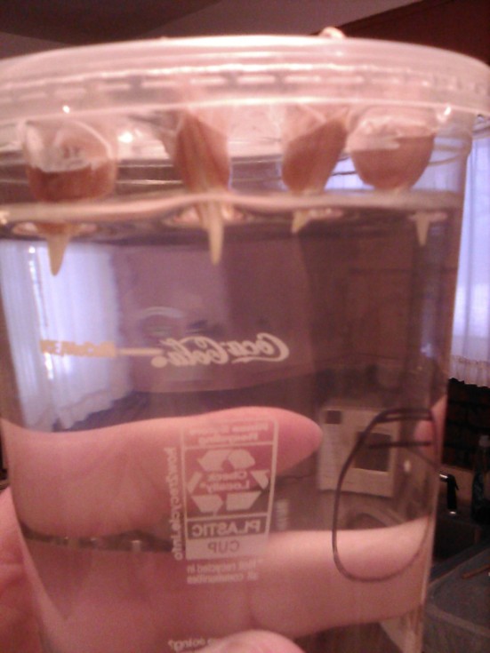 'Mr. Gerry, you have QUADRUPLETS!!!' Gotta go get more cigars, I guess. Four. Of Four. I'll show YOU what FOUR, lol. PS---Once the seeds are stuffed into the dimple slots and I've found the points at which they do not try to pop back out nor in, they really stay put, thankfully! I figured the seedlings would be slowly cut in half or another tragic mishap would occur. Not yet and I'll describe more stuff next! Ohhh, goody, goody!!!