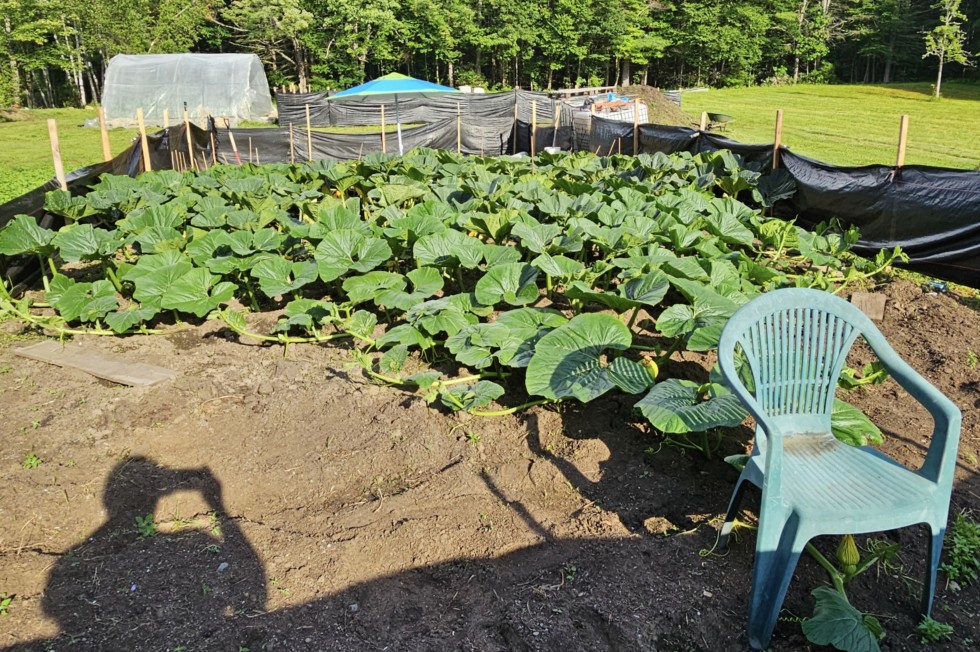 Here was the 2030 a few days ago. I gotta get in there and bury vines/broadfork. Plant is growing quick now.