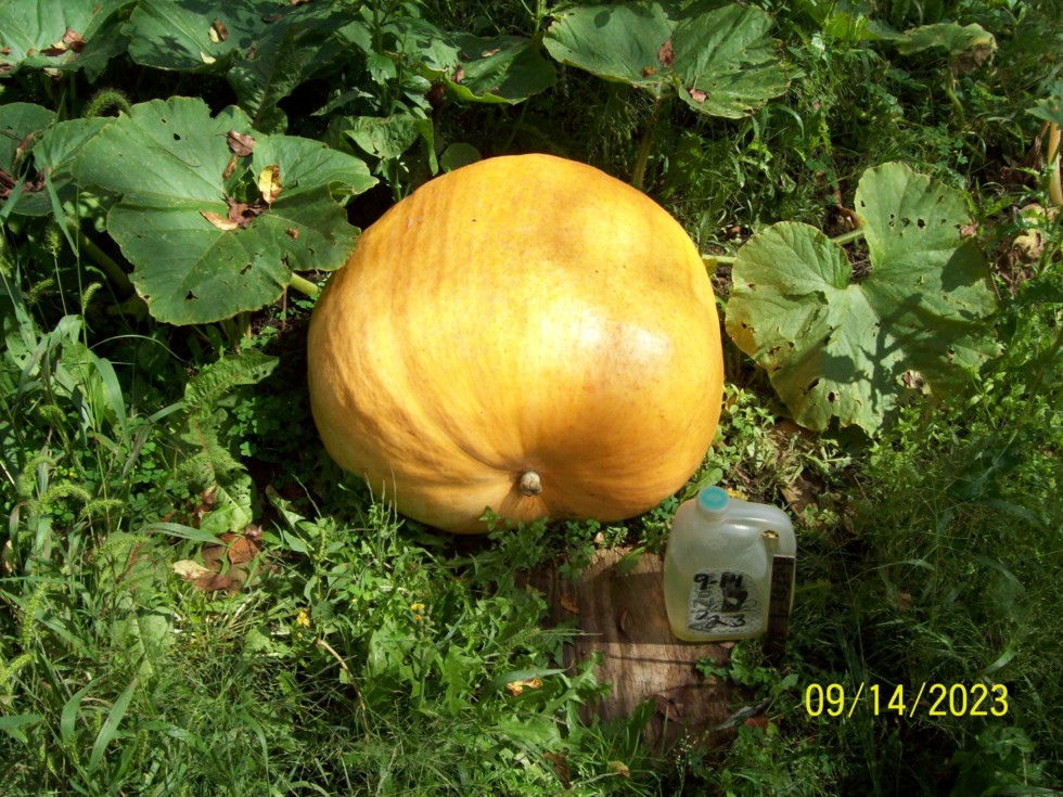 141.8 pounds est. (236 Gerry X 1541.5 McMillin); 236 is (1007 Brown X 2145 McMullen). Yeah??? Ooooohhh... Although I'm STILL trying to get some of these seeds on the 'worthy' list for anything other than color, there are always a few that surprise me with their tenacity and always make it worthwhile to grow them in hopes of at least a One-Hit Wonder. It'd be better in that than to have NO hit at all! My other 236 had subsequent aborts at the other end of the property, also on a VERY small plant; This one just got to this size and has remained nice and solid ever since. Lah-Tee-Dah, I guess! eg