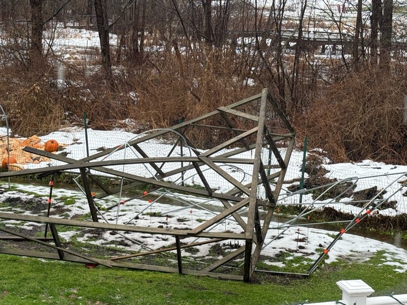Well.. the old long gourd trellis could hold a few hundred pounds of plant but 50 mph wind gusts proved too much. We will just grow on the current standing trellis in 2026 and if that one fails then we will be done with long gourds. A good friend has said we shouldn't be gardening 14.5 feet above ground. We will be buying another tomato hoop though!