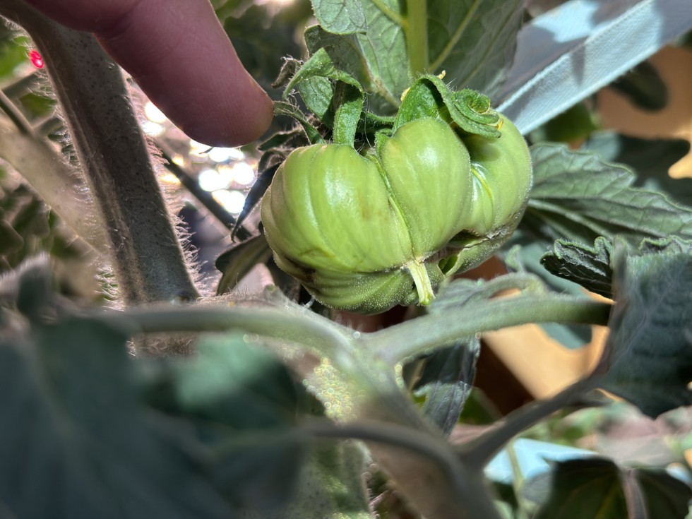 She grew up against the leaf stem overnight. I tied it up so it's not touching anymore, but there is a brown spot where it was resting(bottom left side). Fingers crossed it heals. I'm doubtfully optimistic...