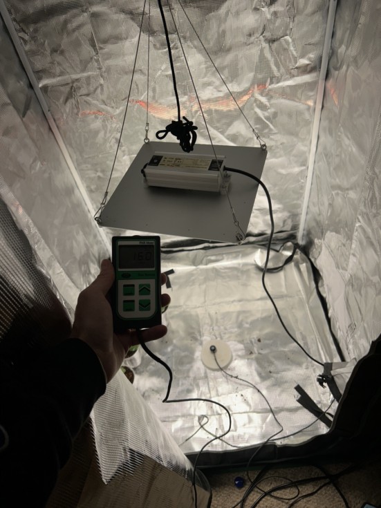 I used Matt's PAR meter to figure out my light intensity in my grow tent. Here are the number's I got: 12": 480PAR 18": 297PAR 30": 189PAR 34": 174Par
