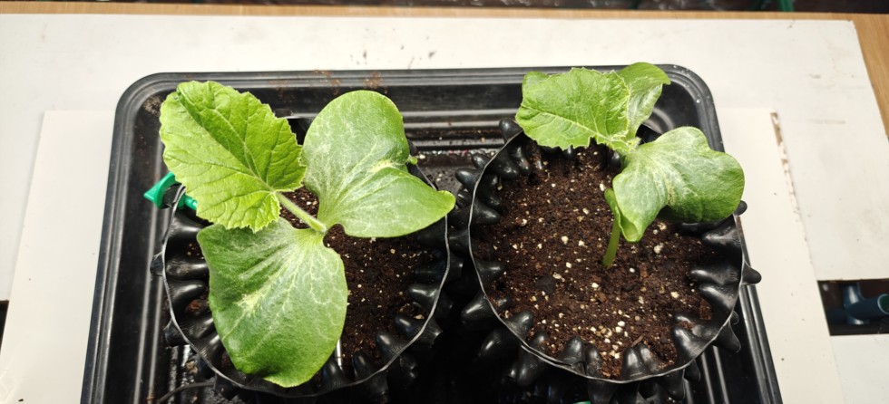 It's been about a week since germination and I think we will go with the one on the left, it's not as leggy and just looks a bit bigger/stronger. Light ppfd is 350 for 14 hours daily, temp is between 22-24C day and night. Planting out will be next week.
