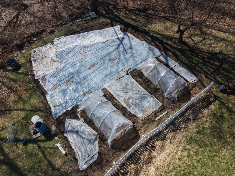 The plastic is on after tilling the mustard in and soaking the patch. Heating that mustard up to get the fumes to hopefully kill or at least suppress it quite a bit with the disease in the soil!