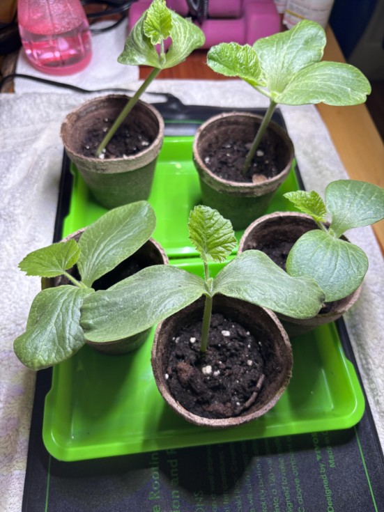 Not much to report the last couple of days other than we're STILL trying to finish clearing the brush around the patch! The only reason we didn't complete it all yesterday was that our chainsaw battery died so we just have a tiny area left and then I can finally plant :D The seedlings are still doing well, despite their little peat pots. Second leaves are starting to fan out a little and first leaves are really soaking up the light, so they seem to be happy. I'm sure they're ready to go into the ground now, but I can't risk transplanting them into the patch just for them to get smacked with branches and sticks as we clear debris, so they will have to wait just one more day. Come hell or high water, they'll be planted tomorrow morning haha