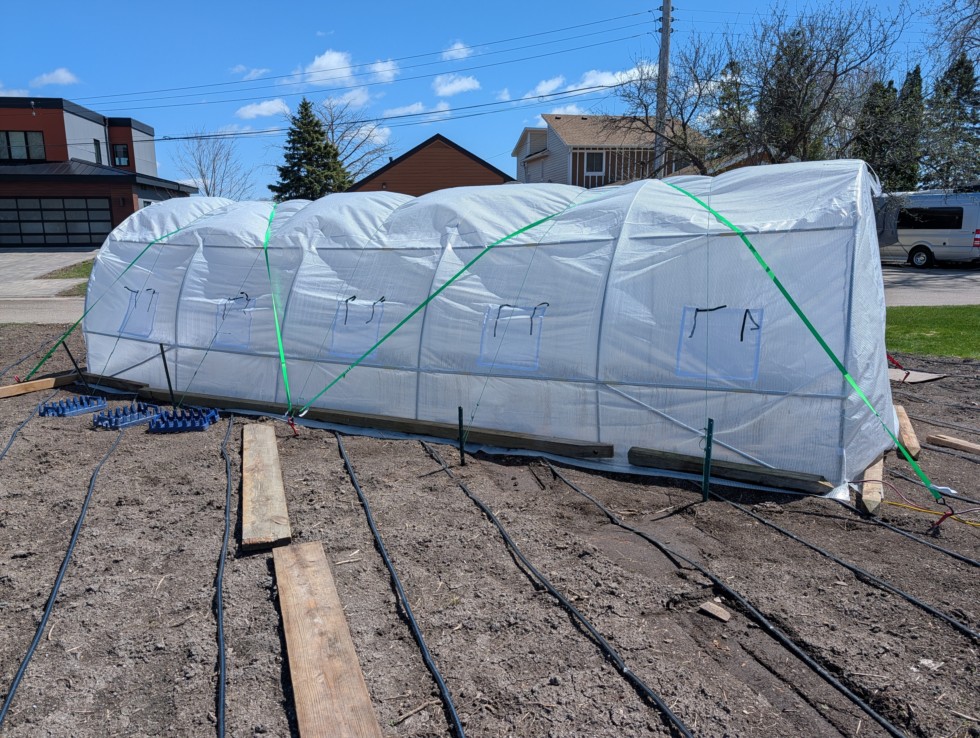Got the plastic up Sat evening and finished more or less securing it. North end is being a pain, may need some sandbags.