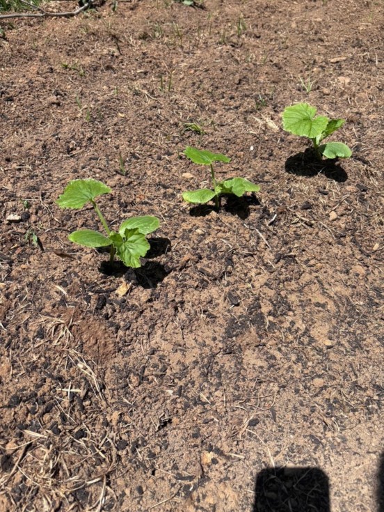 It's kind of hard to tell but we're getting some pretty significant growth each day! I was a little bummed when I checked on them this morning and they weren't massive yet, but it's only been about a week since transplanting them and they're making pretty significant strides! I think because I'm checking them multiple times a day, I'm having a hard time seeing the growth but when I compare photos from the days before, I can see a good bit of progress. I am starting to see some little white spots on some of the leaves, though. I don't think it's mildew, I think it's from bugs. So I've ordered a new pesticide to try and see if I can stave them off a bit. It at least doesn't seem to be hindering their growth. I planted my backup seeds the day that I transplanted these so I've got more little sprouts coming up that I'll be babying for the next couple of weeks. I'm hoping I won't need them! Oddly enough, the Lowes hill plants aren't showing signs of being eaten, I'm assuming it's because of where they're placed in the patch but I'm not 100% sure. Will have to see in the coming weeks